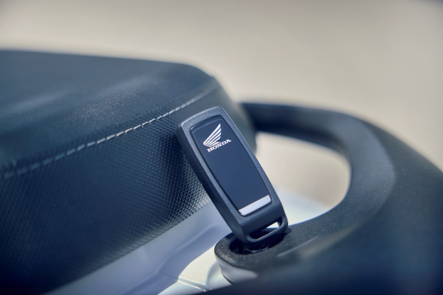 Inteligentním klíčem Honda Smart Key můžete model CUV e: zapnout/vypnout a odemknout sedadlo, aniž byste ho museli vytáhnout z kapsy nebo tašky. Kontrolky po stisknutí tlačítka na klíči Smart Key blikají, díky čemuž skútr najdete rychle i na přeplněných místech.