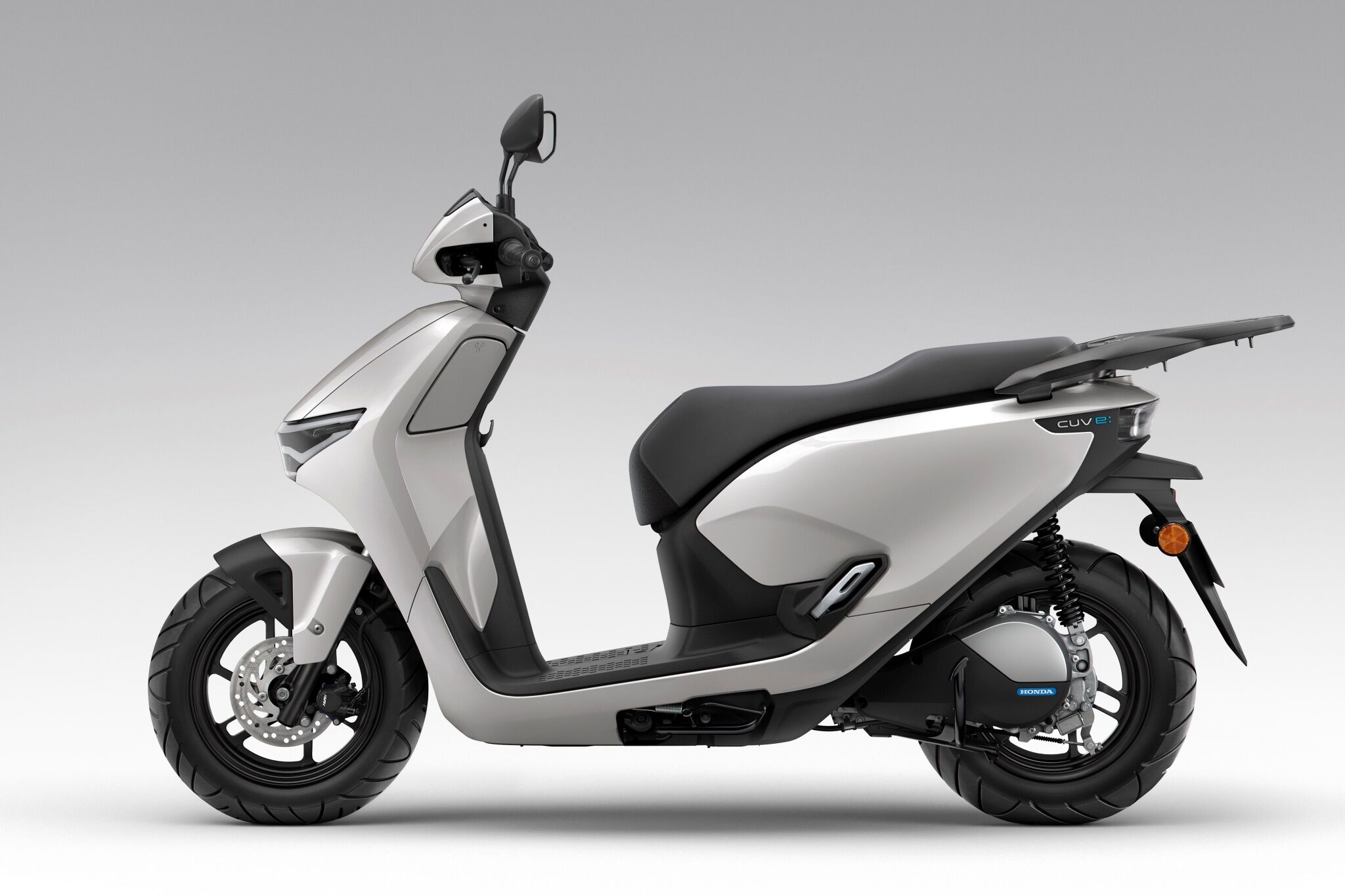 Honda CUV e: je moderní elektrický skútr navržený pro každodenní městské dojíždění. Díky 6kW motoru E-Drive a dvojici vyjímatelných baterií Honda Mobile Power Pack e: nabízí svižnou jízdu, maximální rychlost až 83 km/h a dojezd přes 70 km. Praktickou stránku podtrhuje funkce asistence při couvání, jednoduché domácí nabíjení i nízké provozní náklady. Výbava zahrnuje LED osvětlení, Smart Key, USB-C zásuvku a moderní TFT displej s možností konektivity Honda RoadSync Duo.